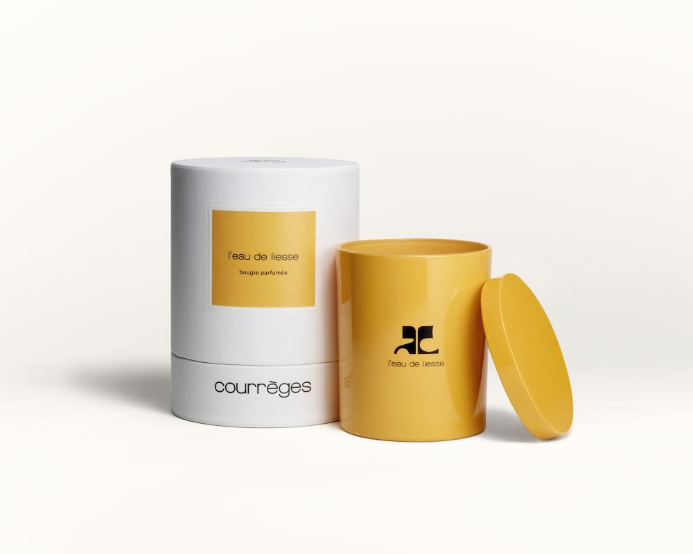 L’eau de Liesse van Courrèges zijn de eerste transparante en heldere tonen van sprankelend néroli, vermengd met de frisse accenten van een champagnecocktail in een oogverblindend bloemenhart van iris, sambacjasmijn en heliotroop. Het parfum is tevens als geurkaars, verpakt in een prachtige gelakte glazen pot, voorzien van een katoenen lont en een deksel van gelakt hout uit de Franse Jura, verkrijgbaar.