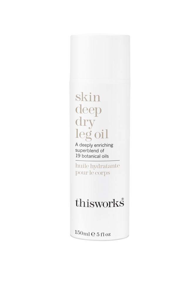 De Skin Deep Dry Leg Oil van This Works is een natuurlijke mix van dertien hoogwaardige botanische oliën en zes koudgeperste plantaardige oliën die zichtbare tekenen van veroudering verminderen. De oliemix met rozenolie, beschermende tuberoos, hydraterend sandelhout en kalmerende teunisbloem zorgt dat een droge, doffe en schilferige huid als sneeuw voor de zon verdwijnt. Samen helpen ze de lipide huidbarrière te beschermen.